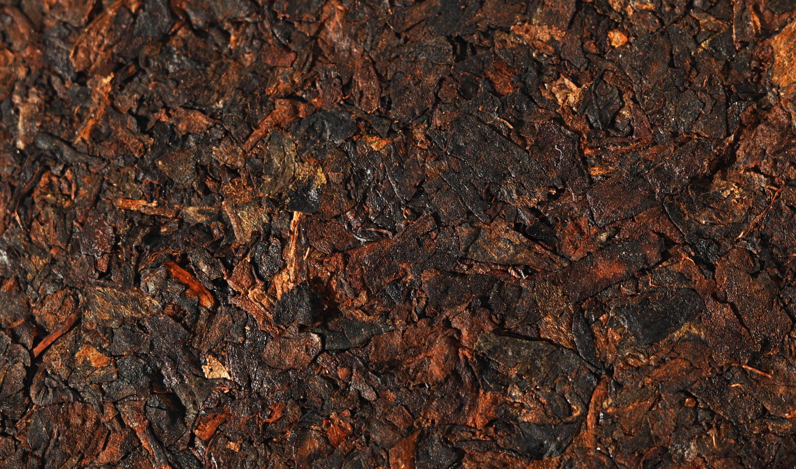 close up of fermented chinese dark tea leaves showing deep brown color