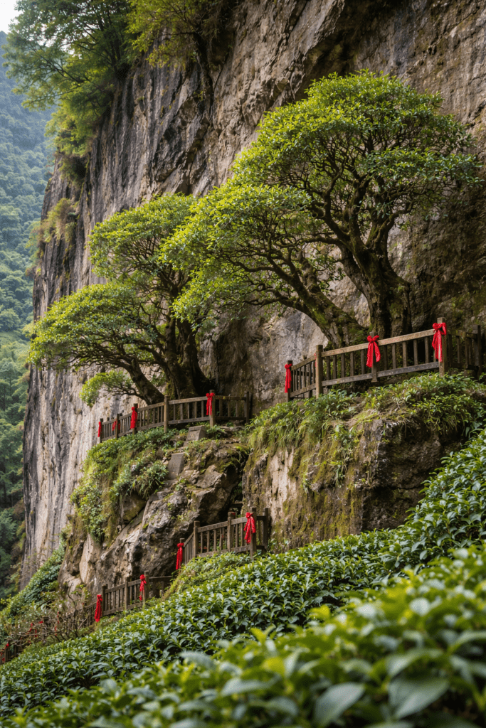 Da Hong Pao tea grows in the Wuyi Mountains, a UNESCO World Heritage region famous for its rocky cliffs and unique microclimate.