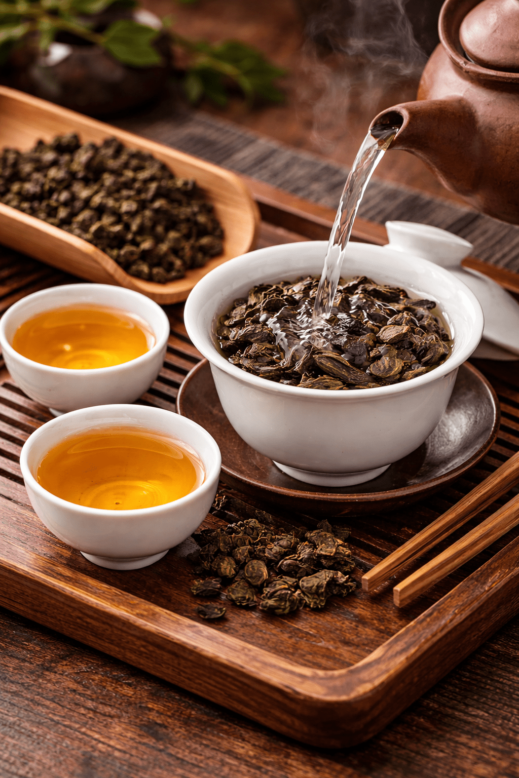 The tea undergoes controlled oxidation that develops aroma compounds.